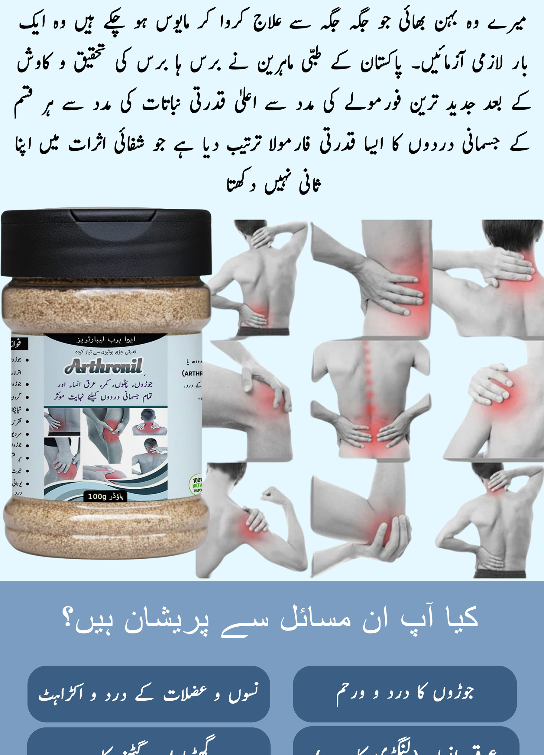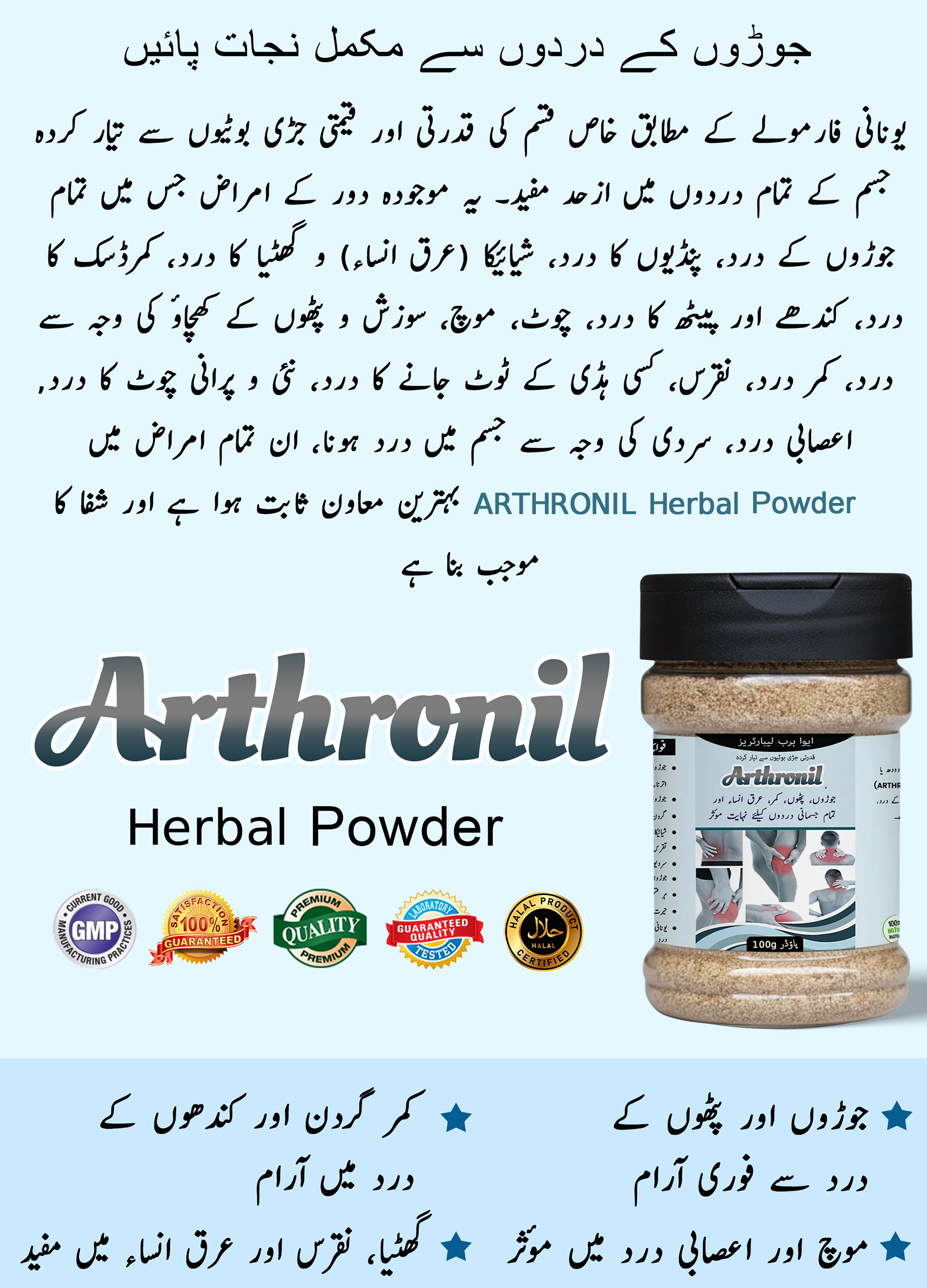 Arthronil herbal powder is presently available only online. It is a high quality herbal treatment for arthritis joint pain and can be purchased securely from this website.