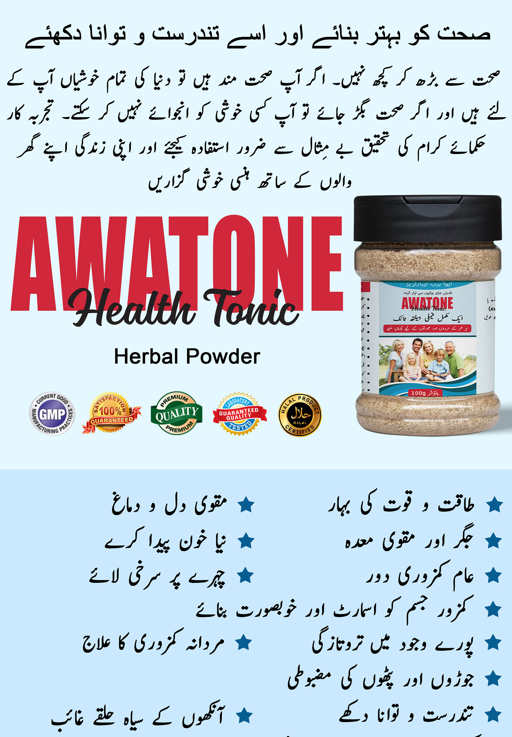 Support your family’s health and vitality with Awatone Health Tonic. This natural formula is designed to boost overall well-being, energy, and strength for all ages. Choose your ideal package and nurture your loved ones with this premium powder solution.