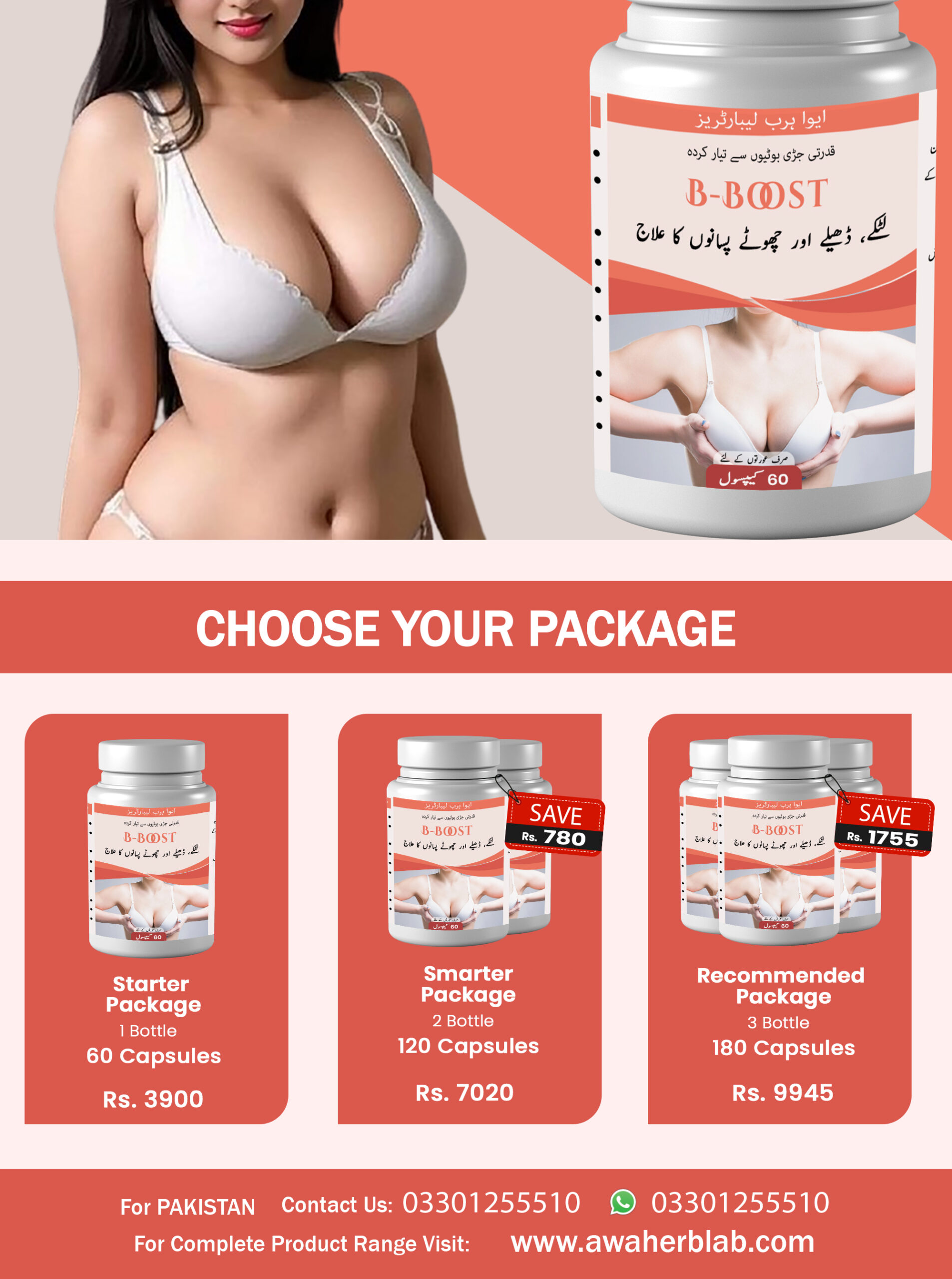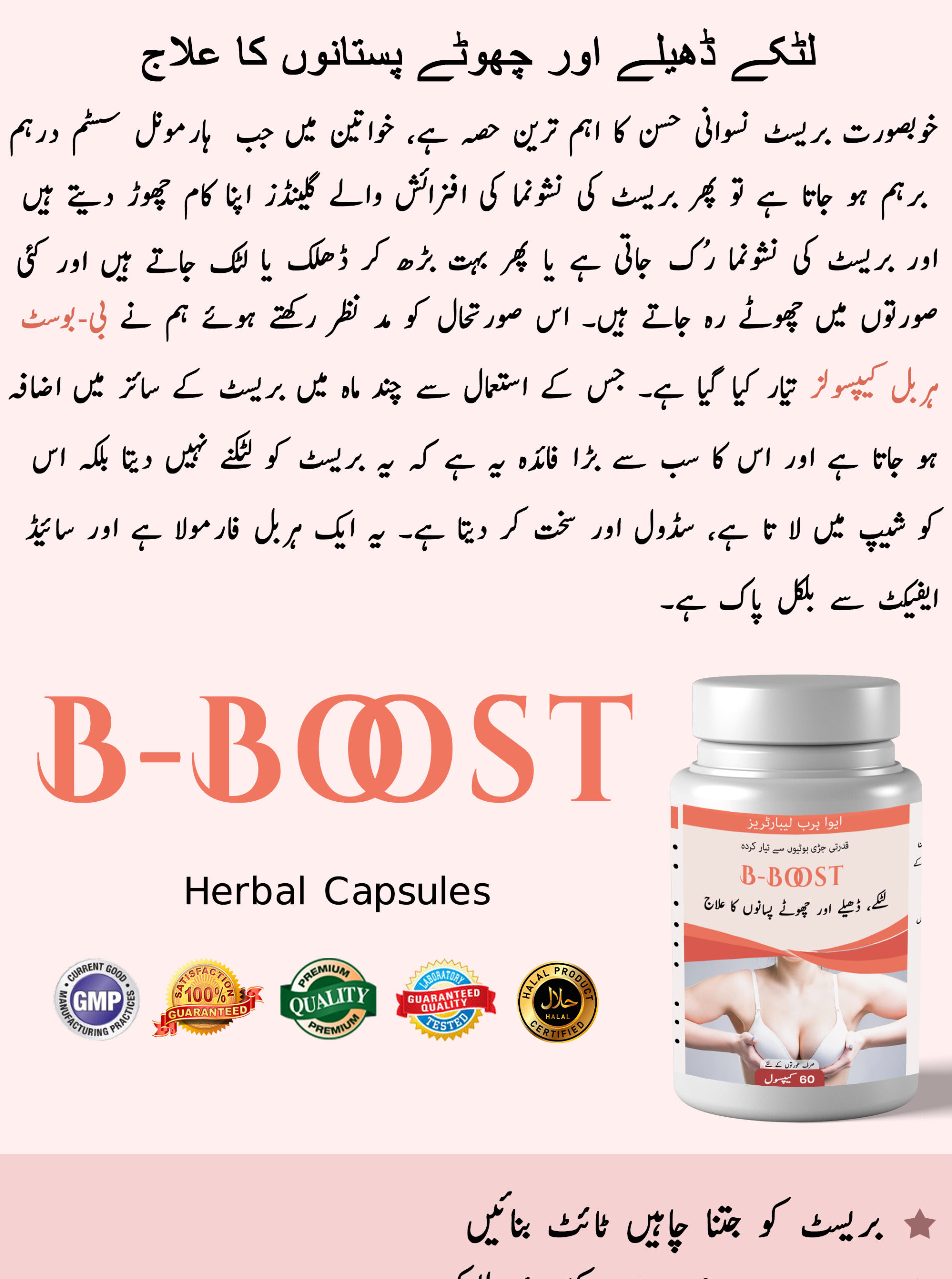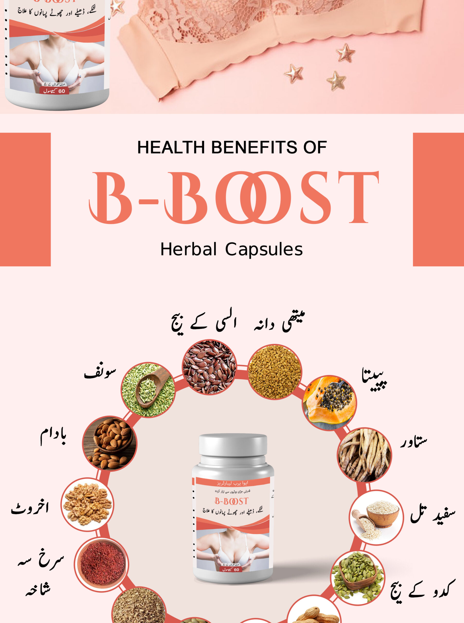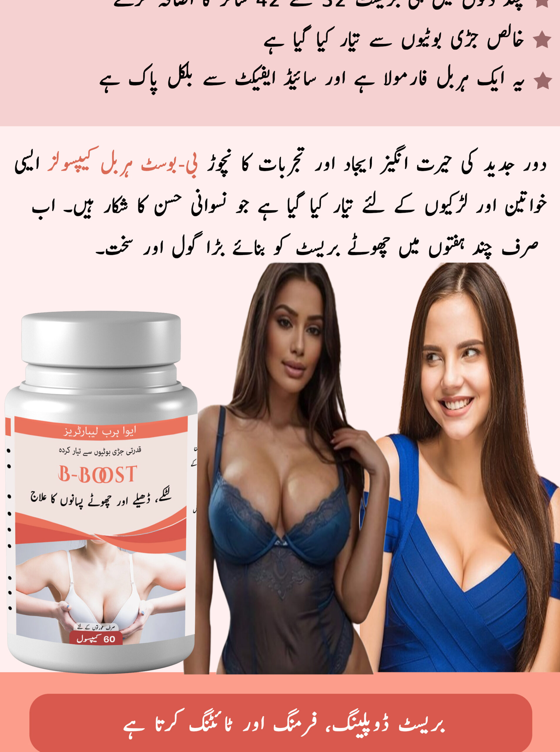 Enhance your confidence and natural curves with B-Boost Breast Enlargement Supplement. This carefully formulated blend supports healthy breast tissue growth, improves firmness, and promotes a fuller appearance over time. Made with natural ingredients, B-Boost helps restore shape and balance, making it an ideal choice for women seeking safe and noticeable enhancement.