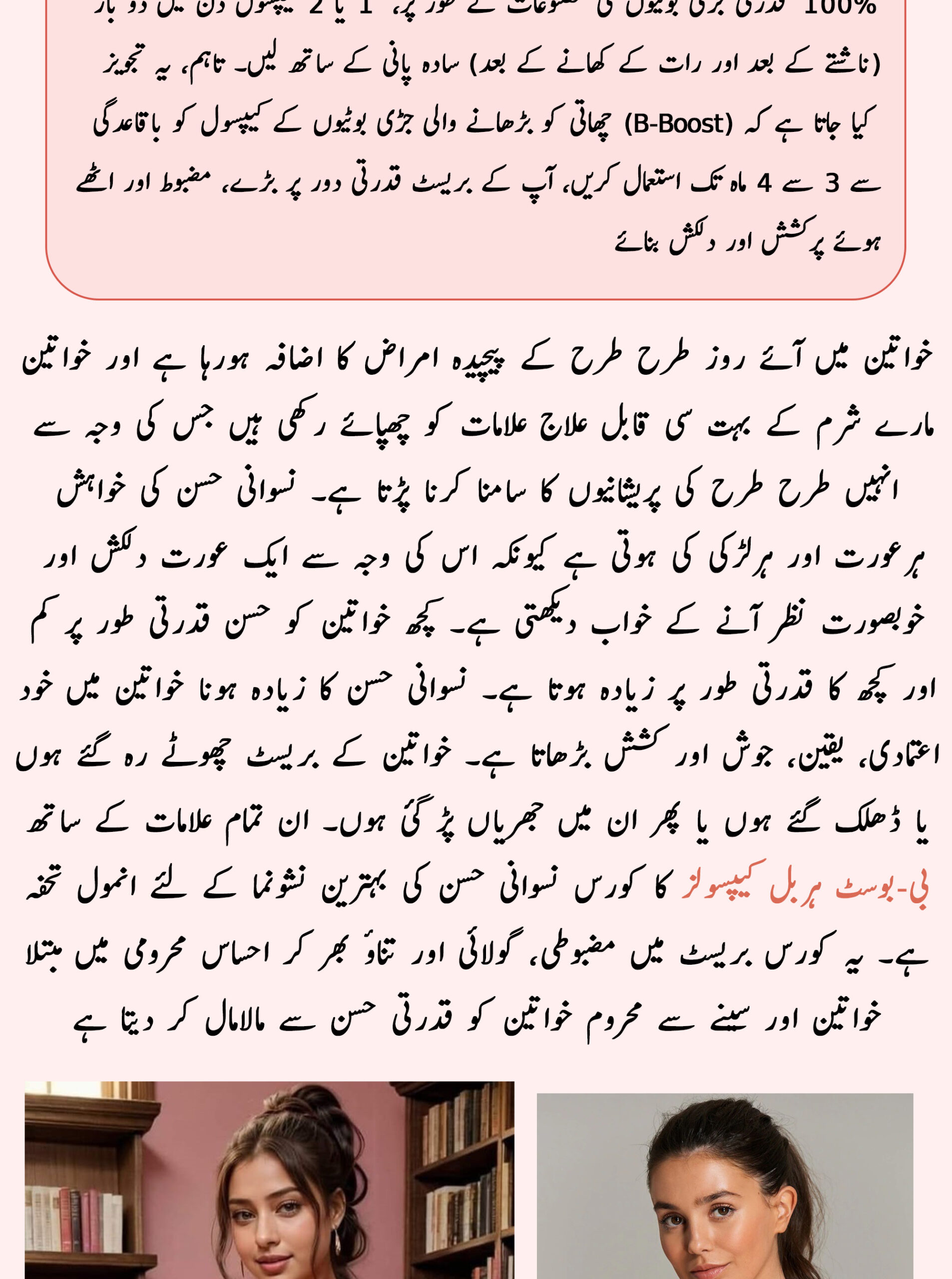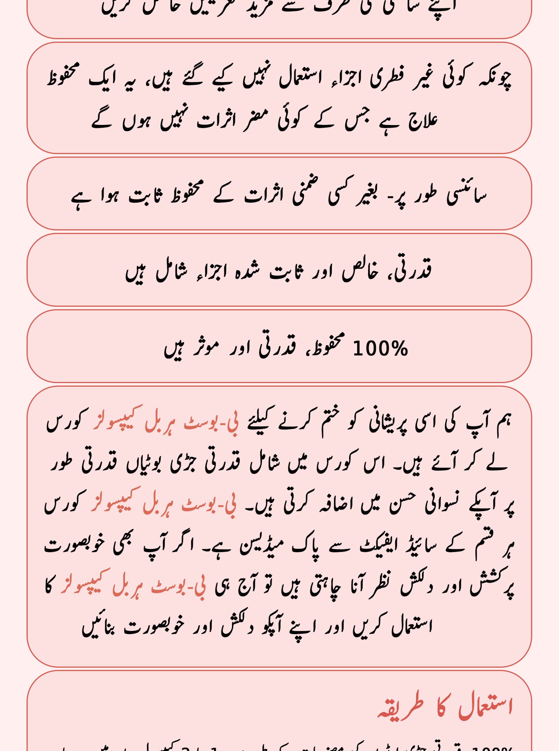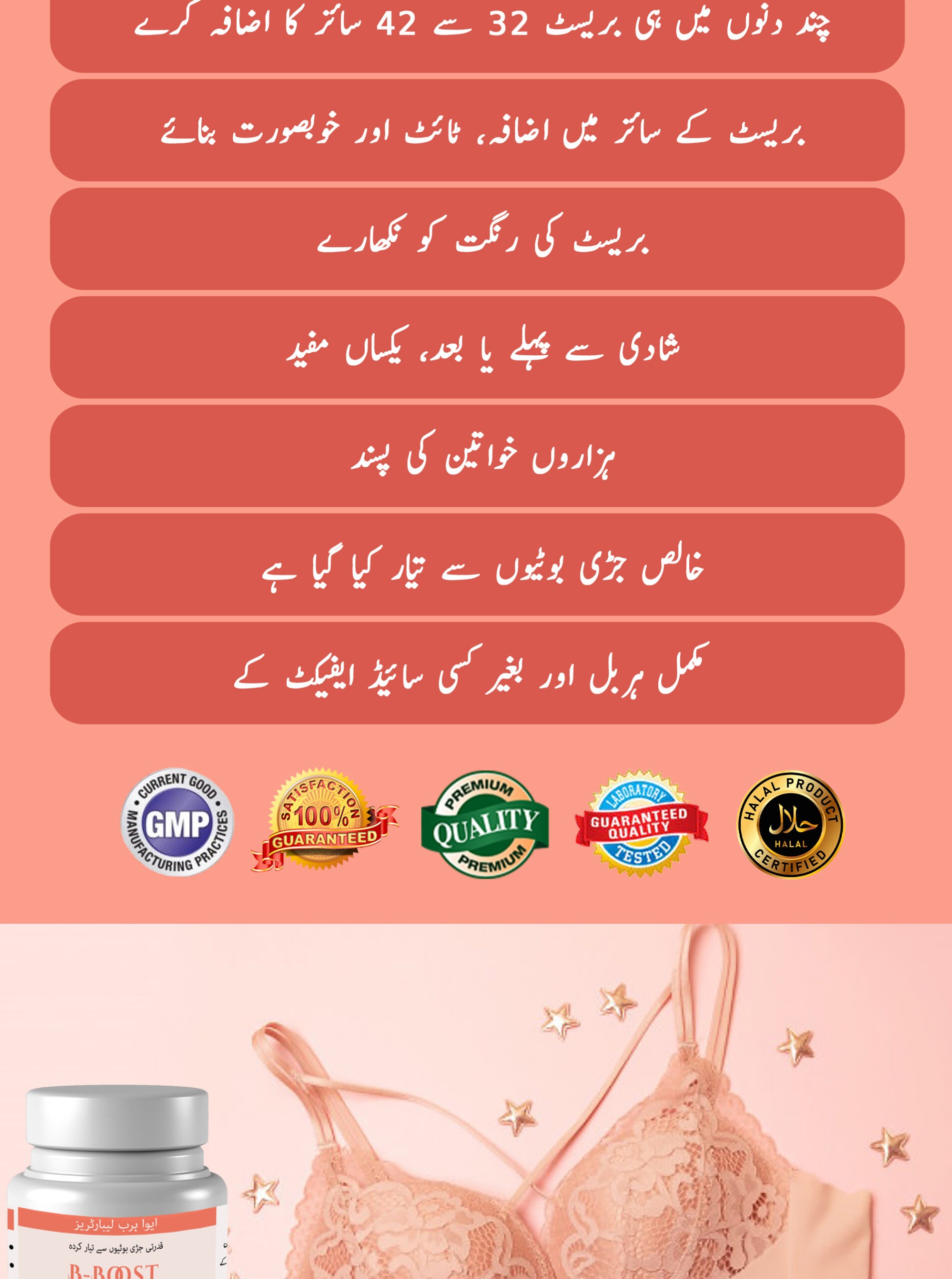 As B-boost herbal capsule is herbal product, you cannot expect overnight result. It is recommended to take this herbal capsule for breast enlargement of women consistently for at least 3 to 4 months to get optimum result.