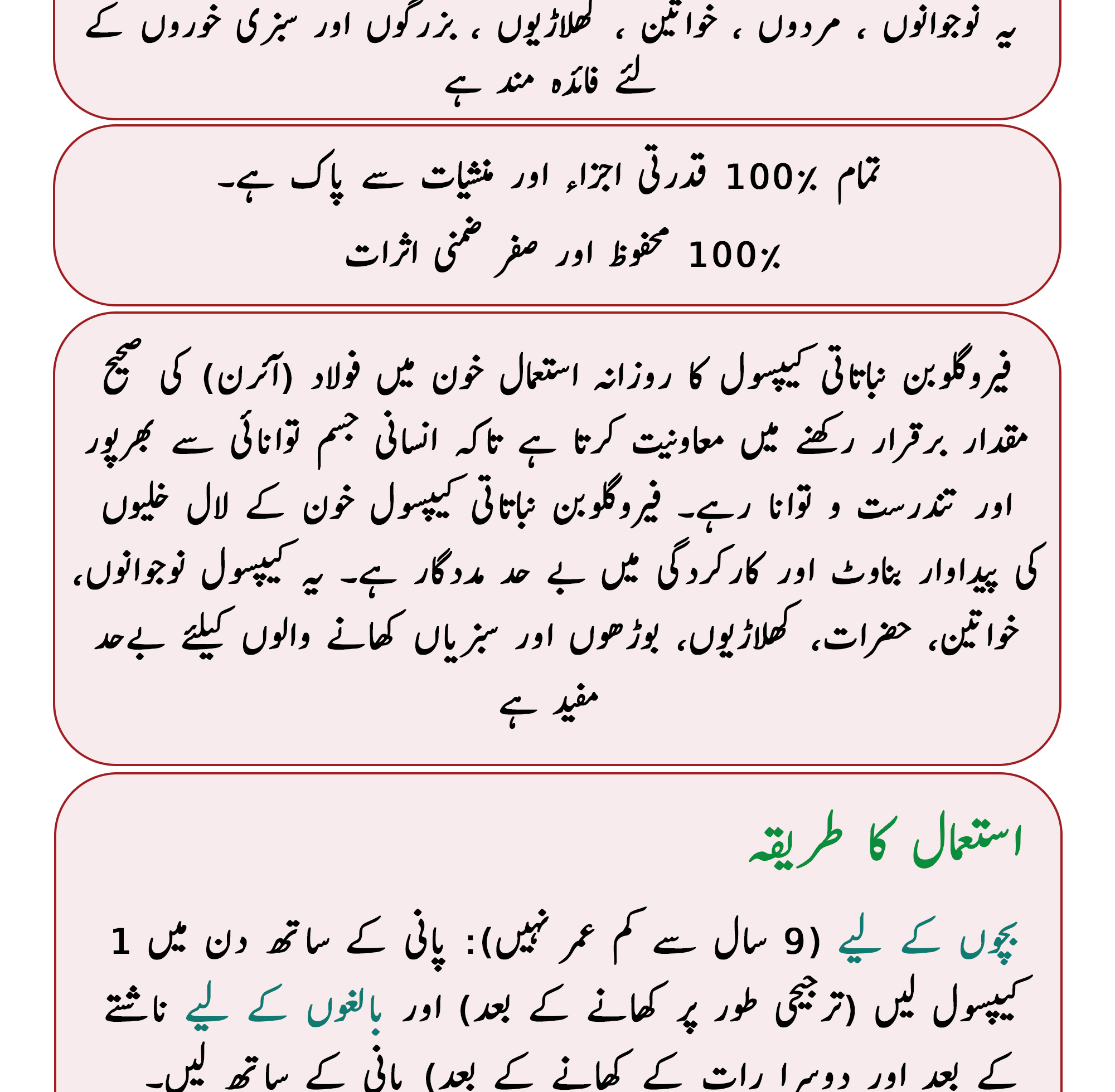 It is safe and no side effects have been reported till date. It is a non-prescription and natural Product for Anemia cure made of valuable and scientifically proven herbal ingredients in our formulation and can be taken with other herbal products or medicines. You can take these Feroglobin herbal capsules for anemia cure for long time without any fear of side effects.