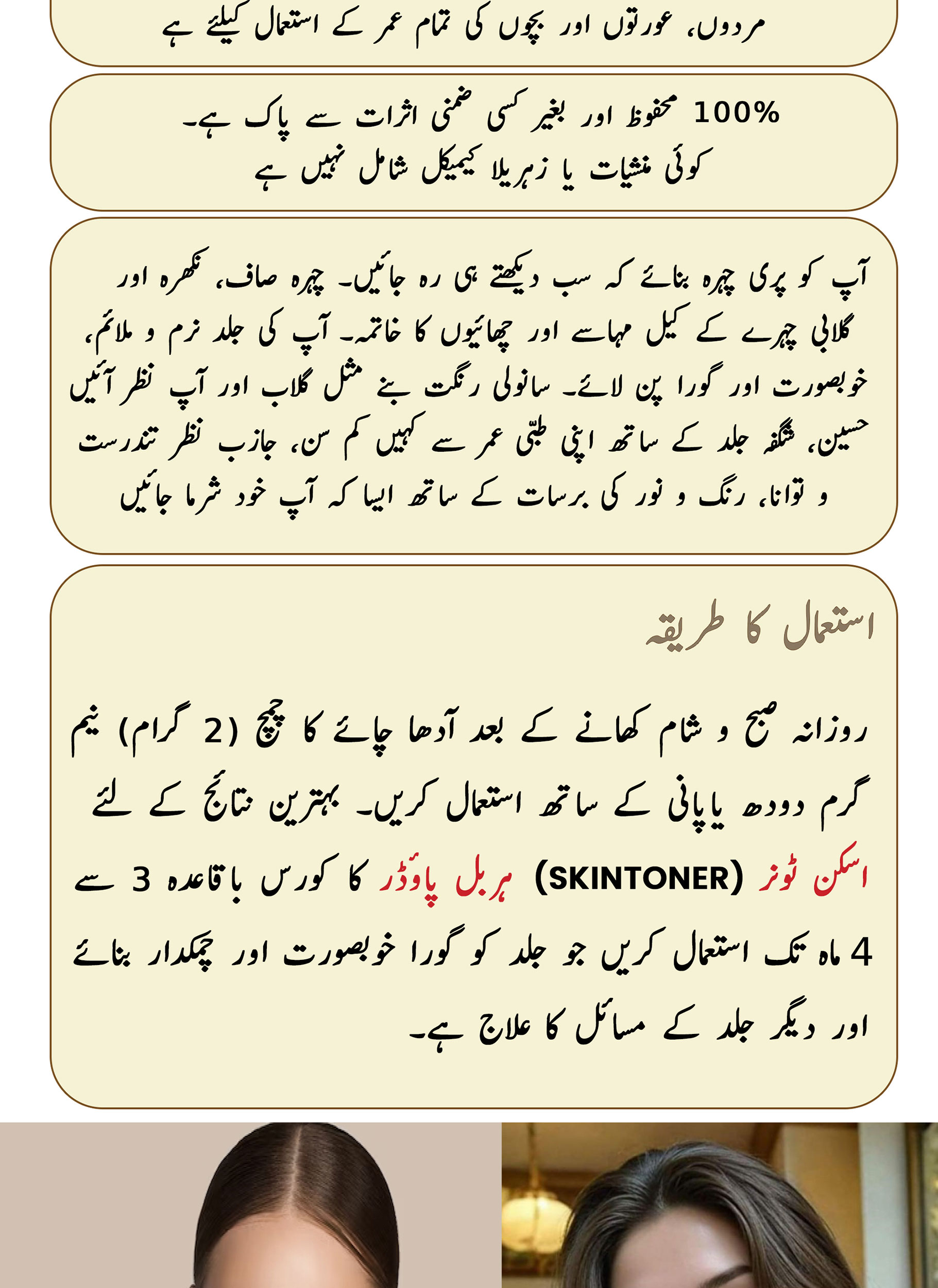 It is safe and no side effects have been reported till date. It is a non-prescription and natural product for skin glow & complexion made of valuable and scientifically proven herbal ingredients in our formulation and can be taken with other herbal products or medicines. You can take this Skin Toner herbal powder for skin glow & complexion for long time without any fear of side effects.